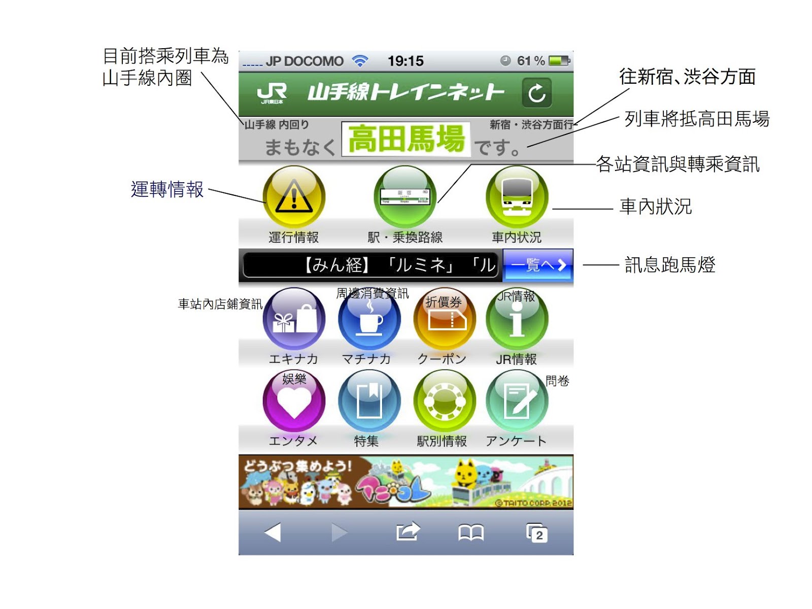 除了上面所提的幾項服務之外。還有「車站內商店資訊」、「車站附近消費資訊」以及「線上coupon」等有趣服務,在此就不一一介紹了。